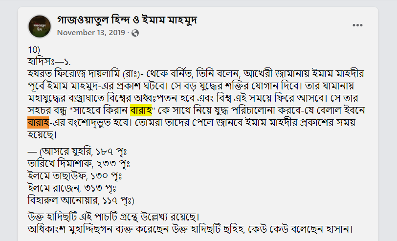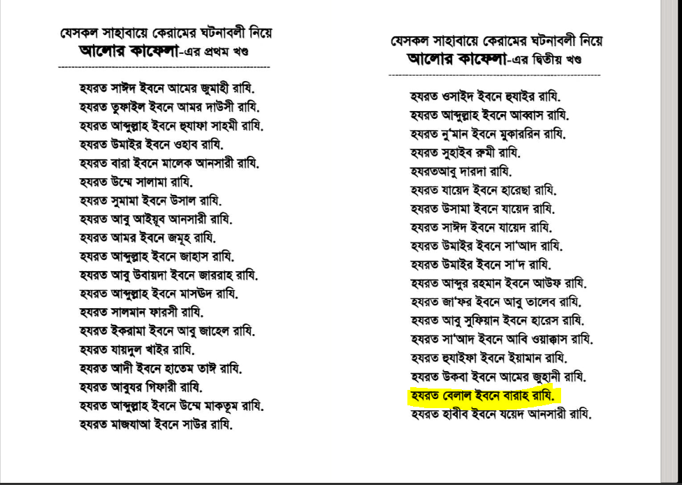 আপনাদের প্রচারিত আখিরুজ্জামান বইতে এবং অনলাইনে প্রচার করা কিছু হাদীসে বেলাল ইবনে বারাহ লেখা। অথচ সহীহ বর্ণনাতে ও সব জায়গায় বেলাল ইবনে রাবাহ লেখা পাওয়া যায়? আপনারা এটার ব্যাখ্যা বলেন। আর সাহেবে কিরণ এর নাম শামীম বারাহ দিয়েছেন এটাও কি ভুল?